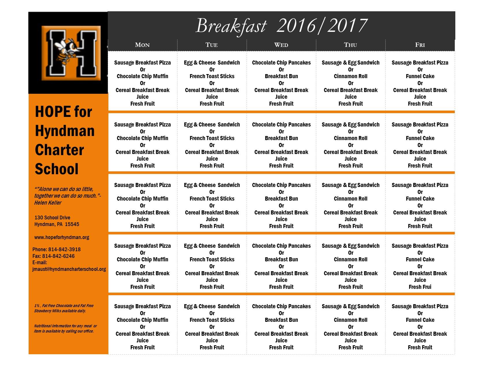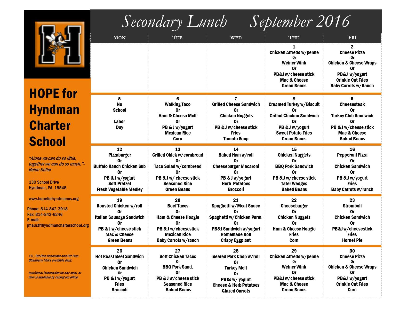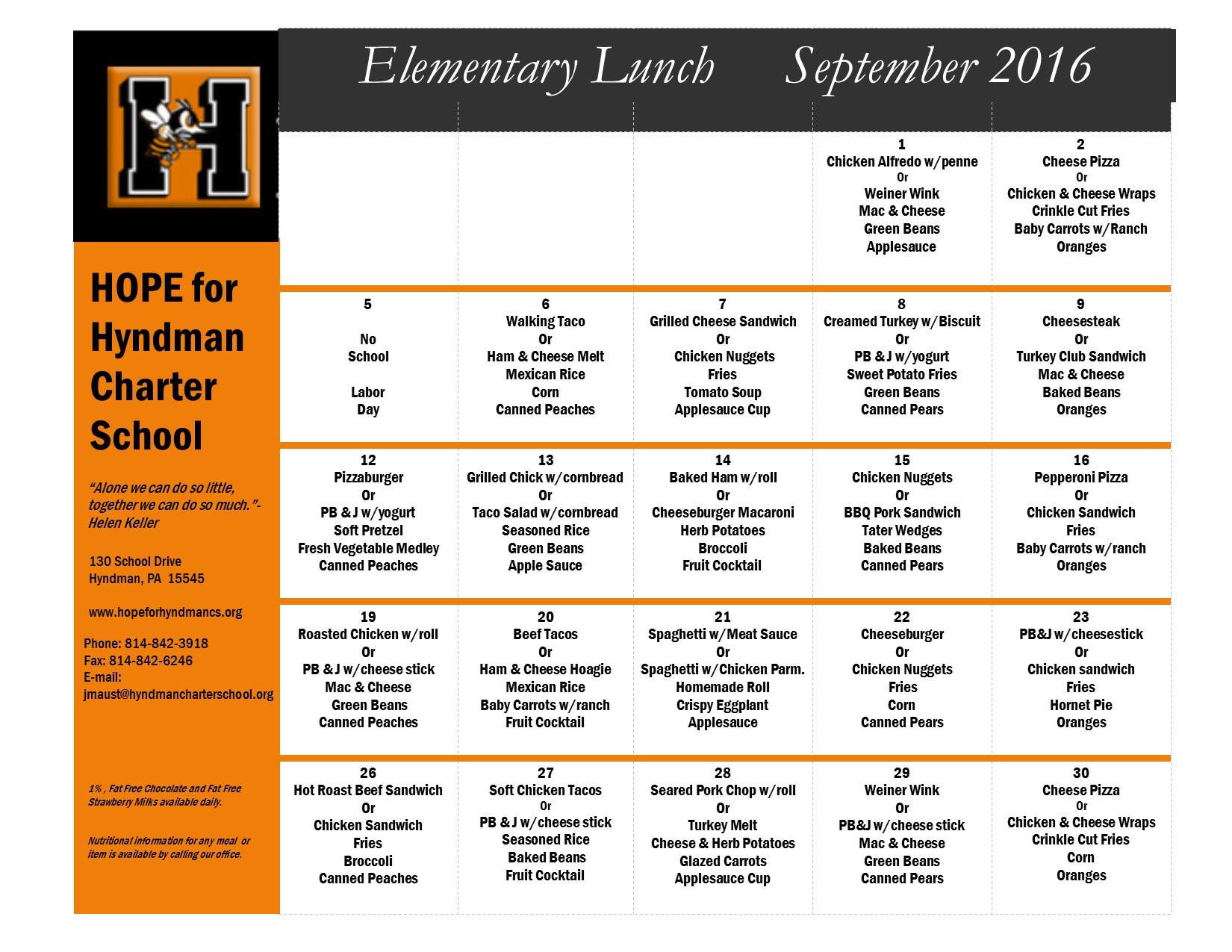 Our lunch accounts are now online. Please go to www.schoolpaymentportal.com, register under HOPE for Hyndman, and add your children to your account to view all of their lunch account activity. Through this site you are also able to make credit card payments for a small convenience fee. Please email Julie Waugerman at jwaugerman@hyndmancharterschool.org with any questions or concerns.